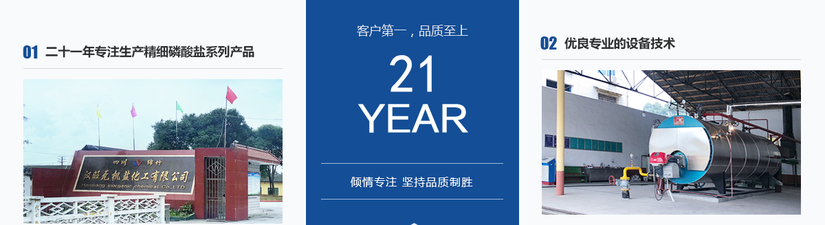 本公司位于四川省綿竹市漢旺鎮(zhèn),是自1997年成立以來至今,已發(fā)展成為四川生產(chǎn)經(jīng)驗豐富的精細(xì)磷酸鹽系列產(chǎn)品專業(yè)生產(chǎn)廠家,地理位置優(yōu)越,毗鄰四川新市和拱星工業(yè)園區(qū),與什邡磷化工生產(chǎn)基地交相輝映。主要生產(chǎn)產(chǎn)品有:磷酸二氫鉀、酸式磷酸鉀、磷酸氫二鉀、磷酸脲、磷酸二氫鈉、磷酸氫二鈉、磷酸三鈉、磷酸二氫銨、磷酸氫二銨等系列磷酸鹽產(chǎn)品。